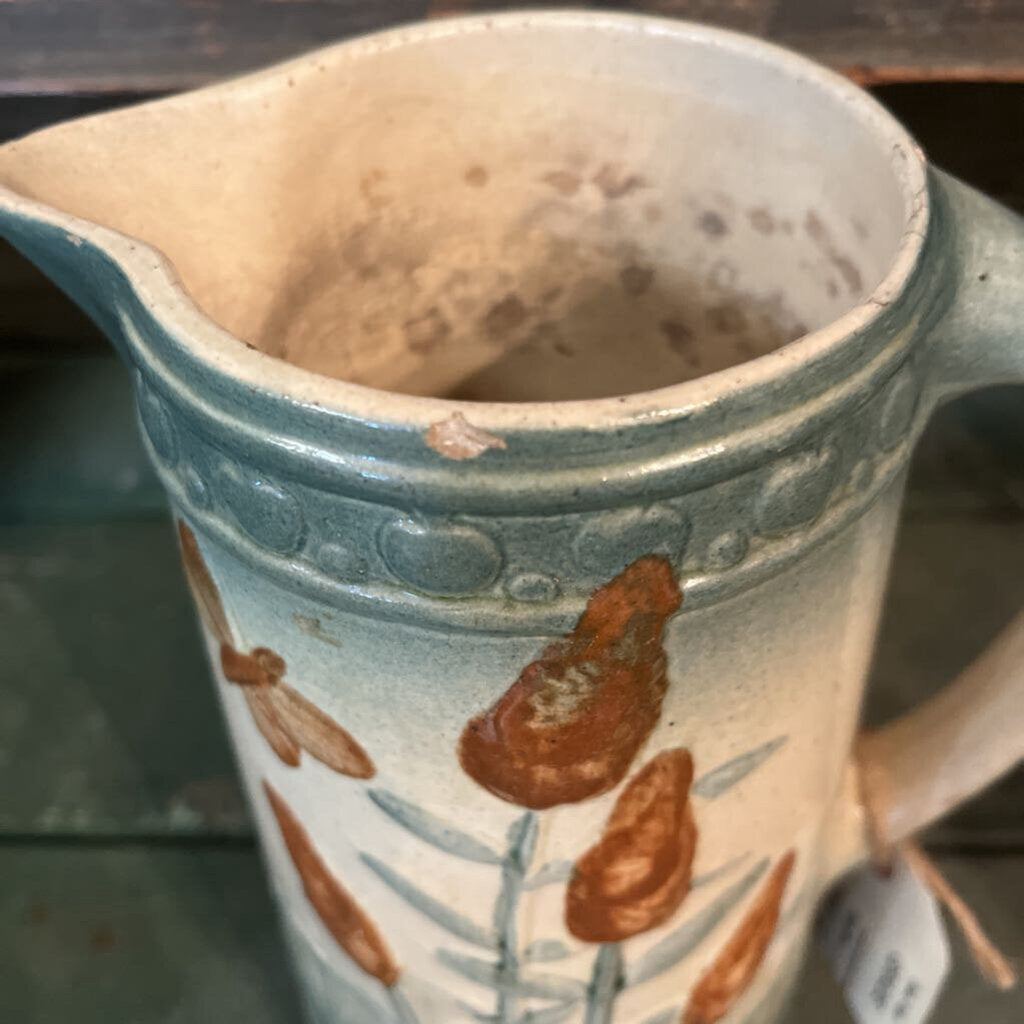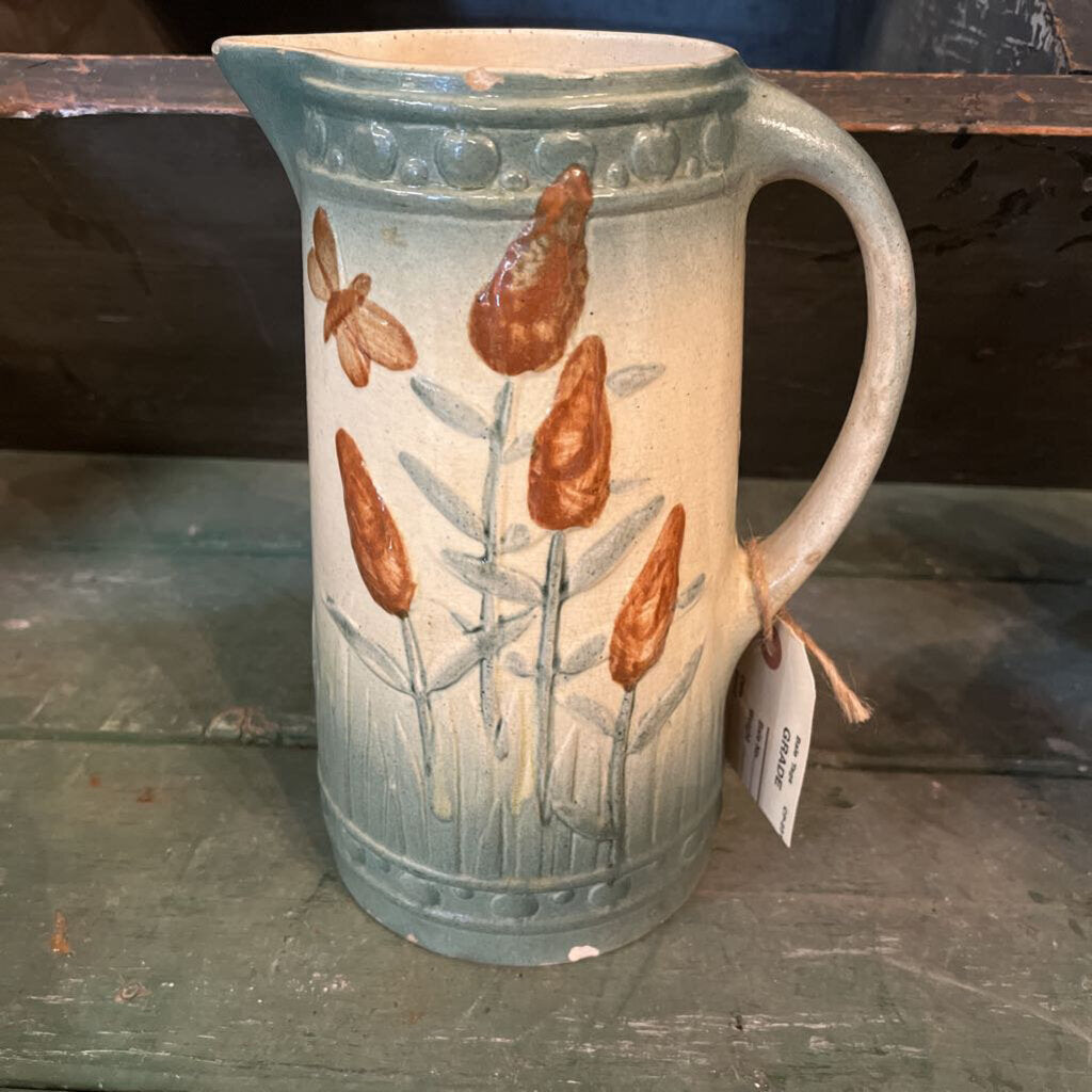 1910s ROSEVILLE GOLDEN ROD PITCHER CATTAILS BUTTERFLY