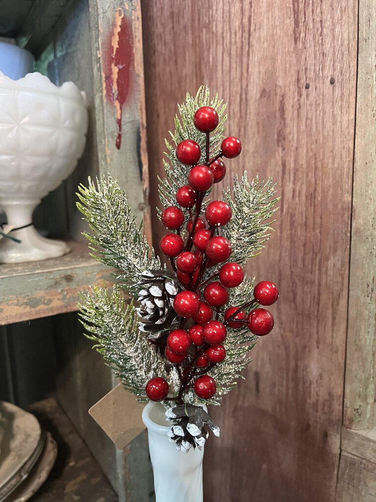 Its mixture of berries, pinecones and snowy greenery with just a touch of gliter make this a perfect stem to just drop in any vase