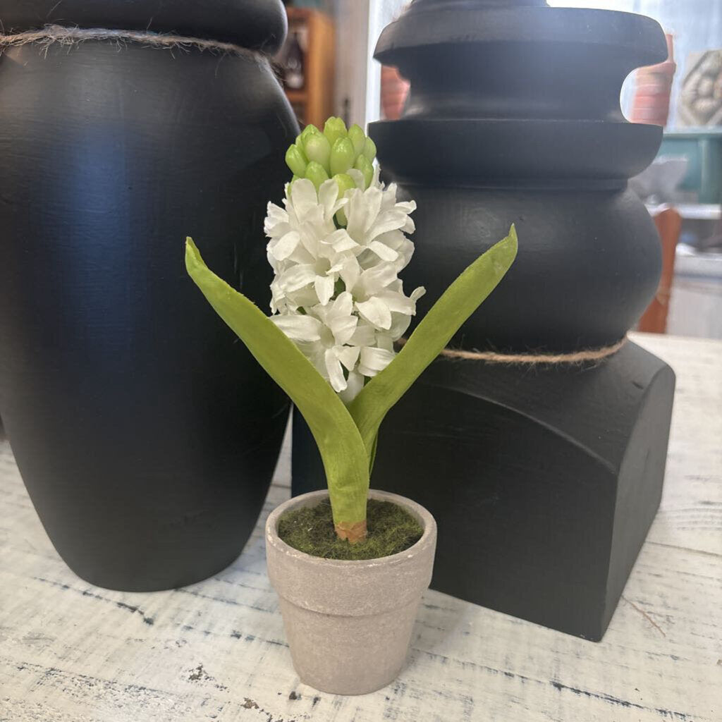 CUTE LITTLE CERAMIC POT HOLDS THIS PRETTY HYACINTH. PERFECT FOR WINDOW LEDGES OR SMALL SPACES NEEDING JUST A TOUCH. 8" H
