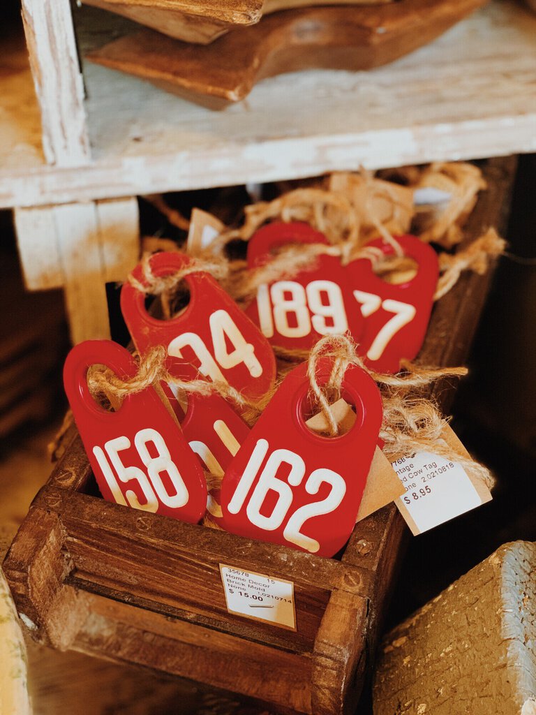 3.5" TALL X 2" WIDE. THESE COW TAGS MAKE A GREAT KEYCHAIN OR A CUTE ORNAMENT! NUMBERS WILL VARY