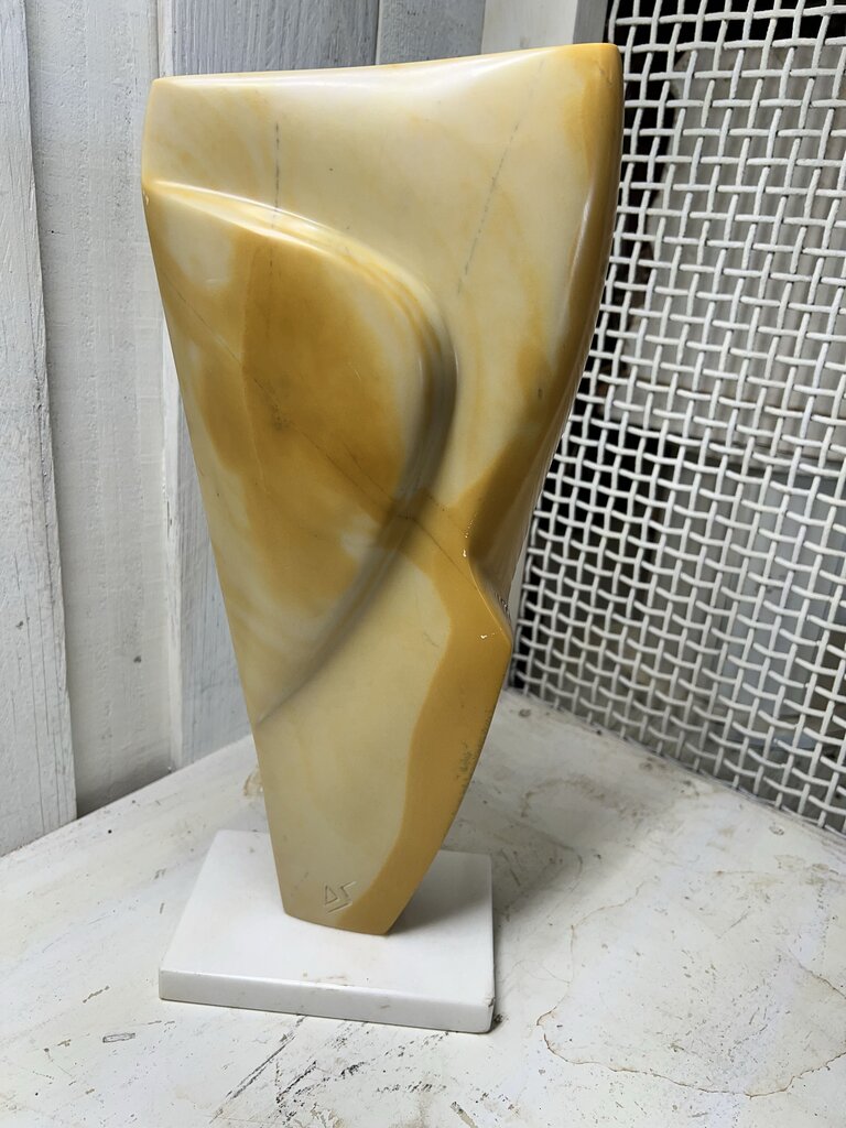 THIS ORIGINAL MARBLE SCULPTURE BY ARTIST DENNIS SOHOCKI IS A BEAUTIFUL ADDITION TO ANY ART COLLECTION! 16" TALL 4"X6" AT BASE AND 6 1/2" WIDE AT TOP