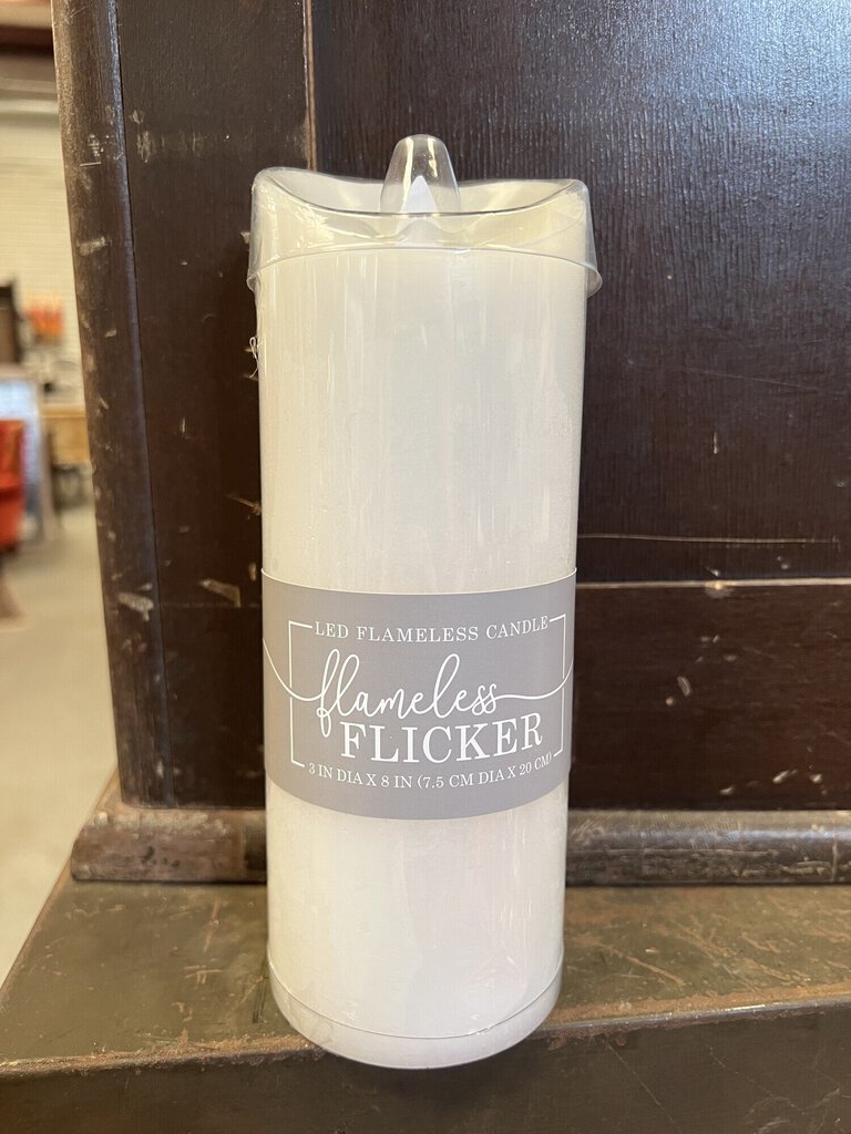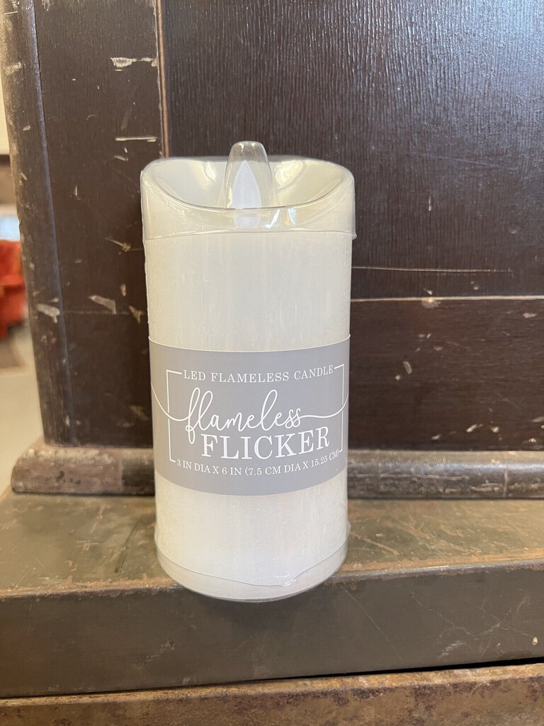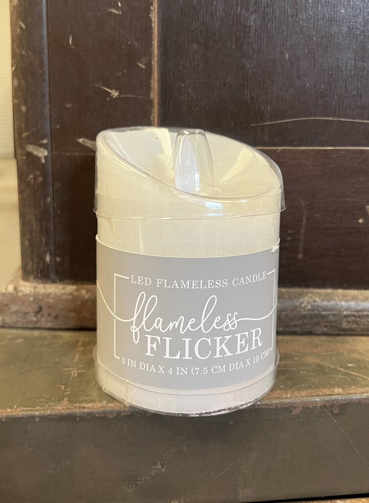 ALL OUR FLICKER CANDLES MEASURE 3 INCHES IN DIAMETER WITH THE EXCETION OF THE XL ONE WHICH MEASURES 5 INCHES IN DIAMETER . THESE CANDLES require 3 AAA(not included) These flameless candles are perfect in most of our candle rings, they have a real wax feel and add warmth to any space. Add the remote control which gives you a range of options for your candle. One remote will operate up to 10 candles. Just look up inventory number 43839 to find the remote for these candles