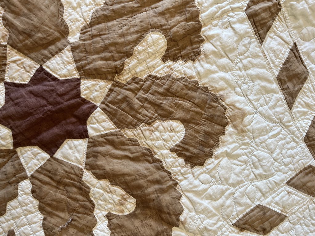 THIS QUILT IS PERFECT SIMPLICITY! THE UNIQUE STAR AND THE NEUTRUAL COLORS MAKE HOMEMADE CLASSIC CHARM! 93" X 93 1/2"