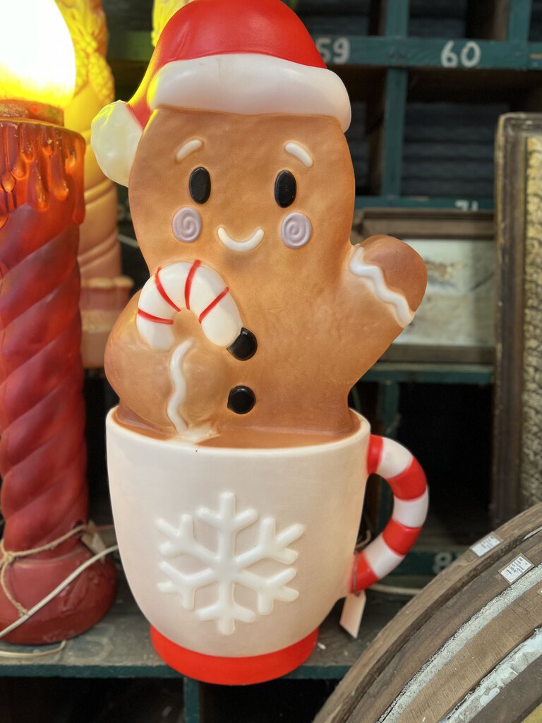 33" TALL 16" WIDE ADORABLE GINGER BREAD MAN IN MUG BLOW MOLD!