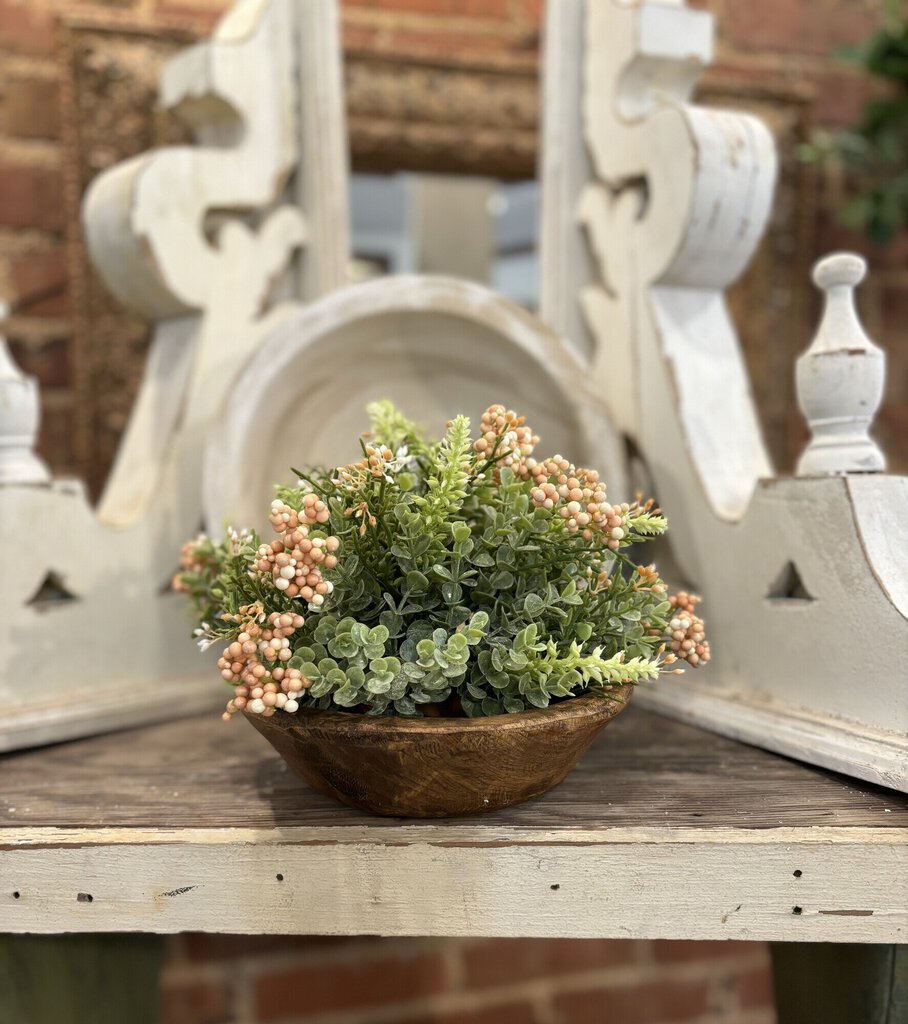 The Pink Harpeth Half Sphere has pretty shades of pink berries surrounded by shades of greenery. Use this half sphere in dough bowls, lanterns or just sitting with your tablescape. Half sphere measures approx 9 inches in diameter and is approx 5 inches high