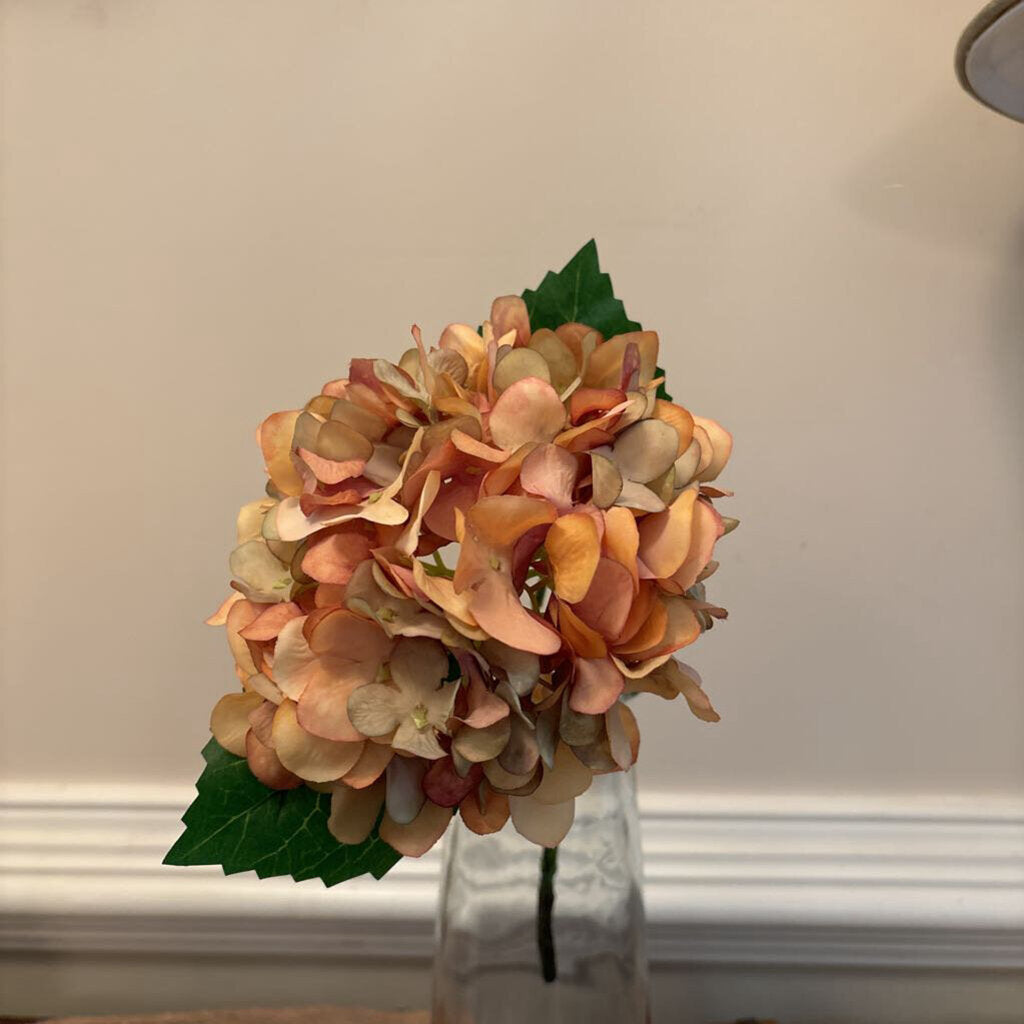 THESE PRETTY HYDRANGEAS ARE PERFECT TO ADD TO ANY ARRANGEMENT OR JUST ON THEIR OWN IN A VASE. THE FABRIC LEAVES AND PETELS GIVE THIS FLORAL A REALISTIC LOOK. THEY MEASURE 13" TALL