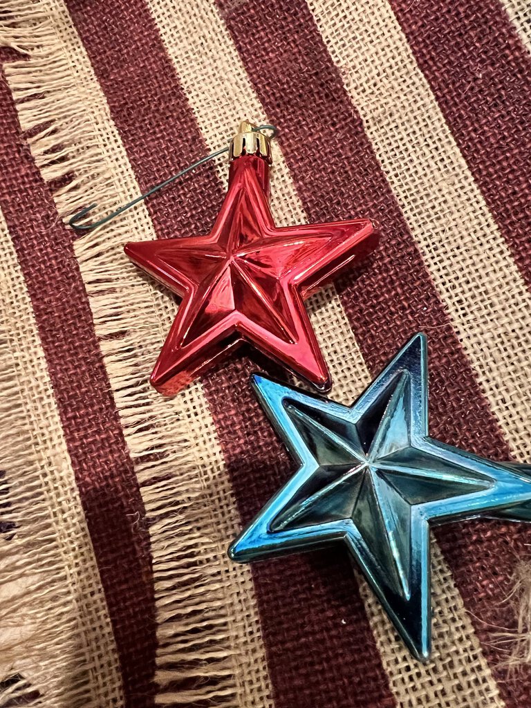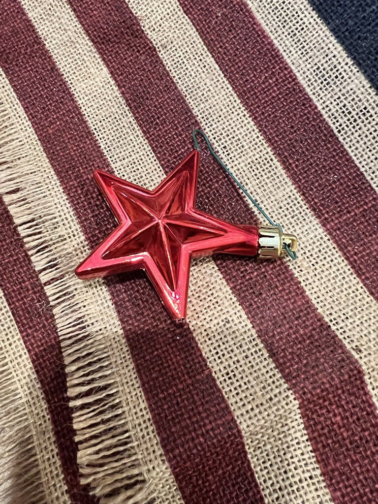 SHOW YOUR AMERICAN SPIRIT ALL YEAR WITH THESE ADORABLE STAR ORNAMENTS! 2 1/2 X 3. ALSO AVALIBLE IN BLUE