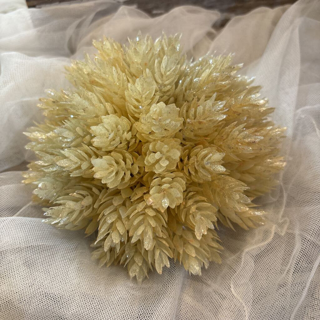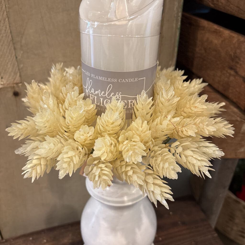 THIS PRETTY LINE OF FLORALS CAN BE USED ANY SEASON. ITS PRETTY CREAM COLOR WITH A TOUCH OF GLITTER MAKE IS A YEAR ROUND CHOICE
