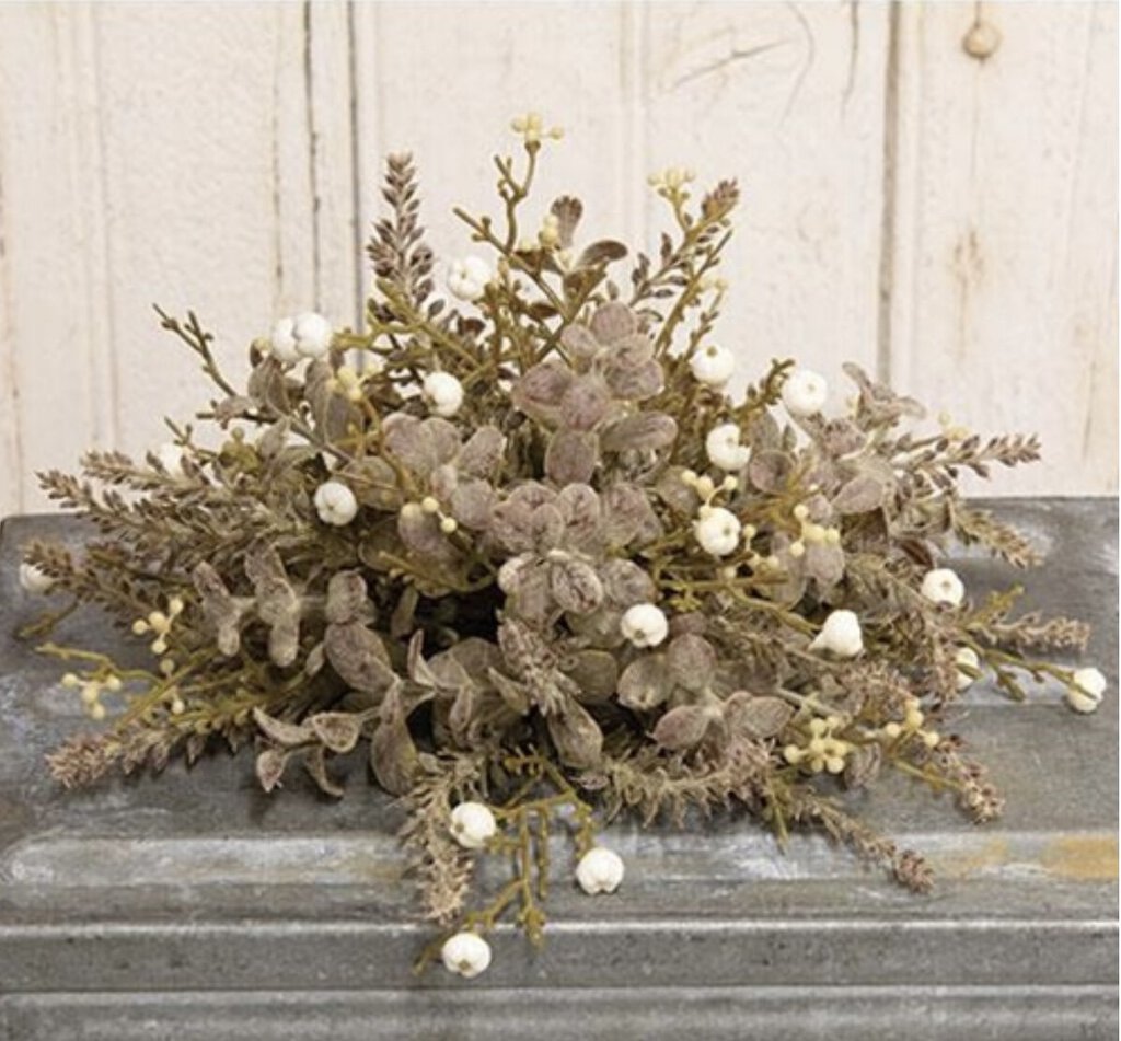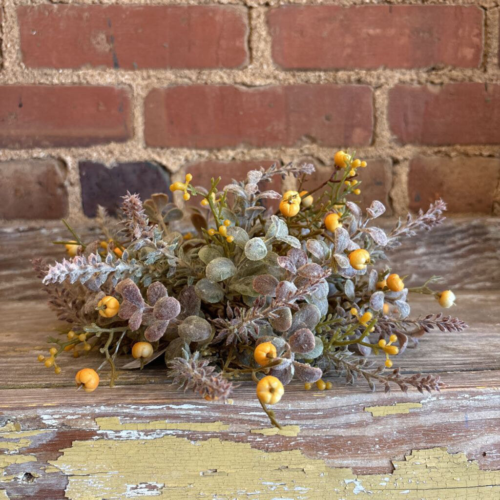 GREEN PLASTIC LEAVES WITH MINI PUMPKINS ADORN THESE LOVELY HALF SPHERES. MEASURES 10" IN DIAMETER