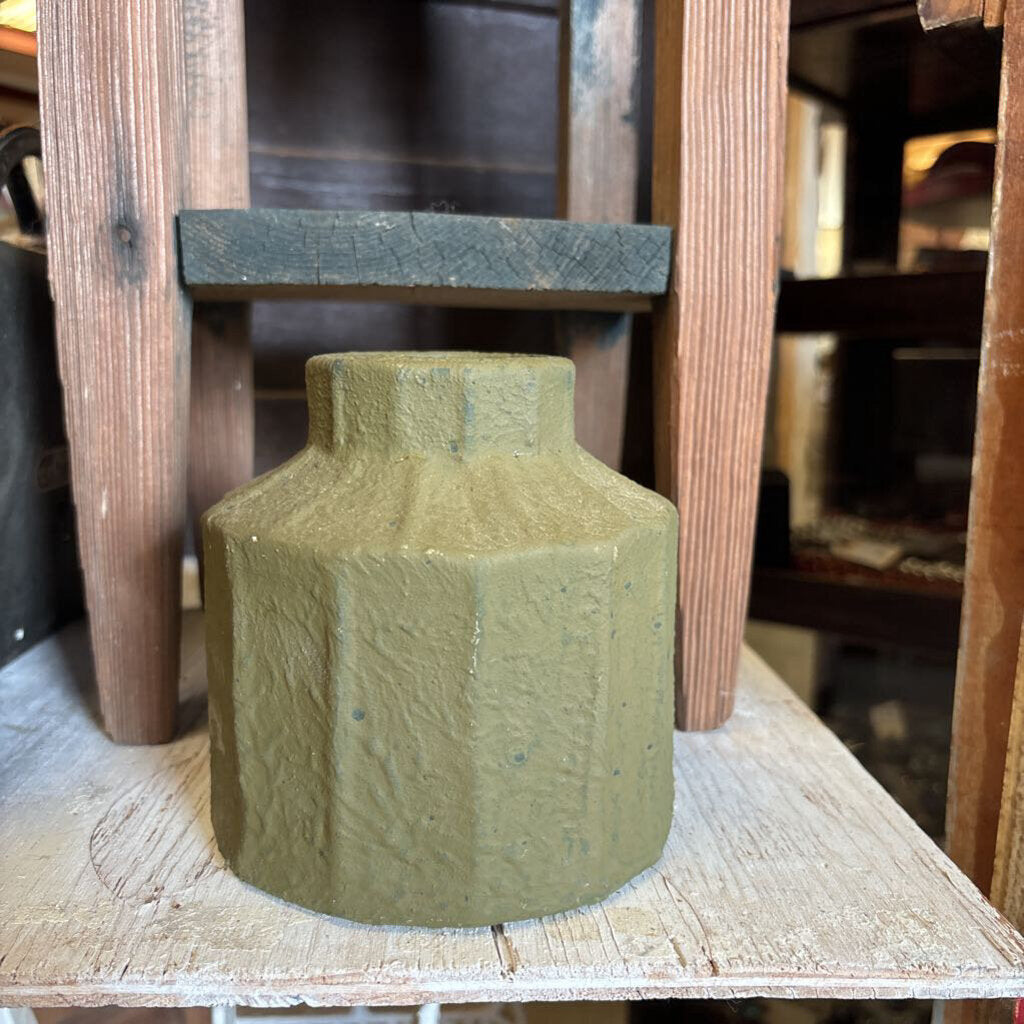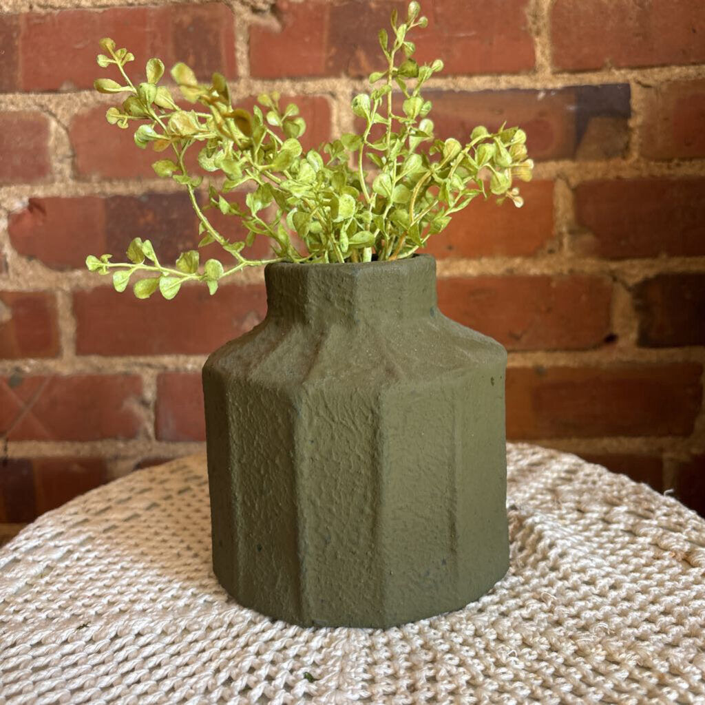 THIS CUTE CLAY BOHO STYLE VASE IS 5" TALL X 4.5" WIDE