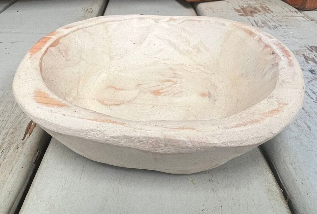 WOODEN DOUGH BOWLS PERFECT TO ADD TO ANY SPACE. EACH BOWL HAS ITS OWN UNIQUE CHARACTERISTICS BUT IS ROUGHLY 6" IN DIAMETER