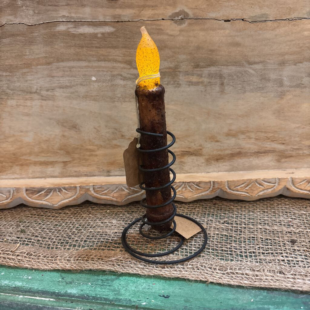 SPRIRLED BLACK WIRE CANDLE STAND HOLD OUR TAPER CANDLES. 4" TALL BASE IS 3" WIDE