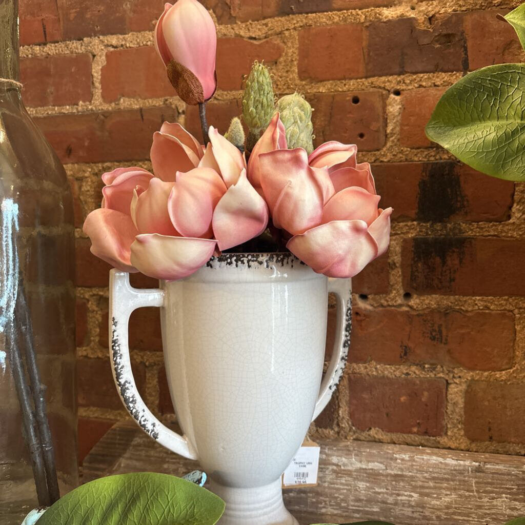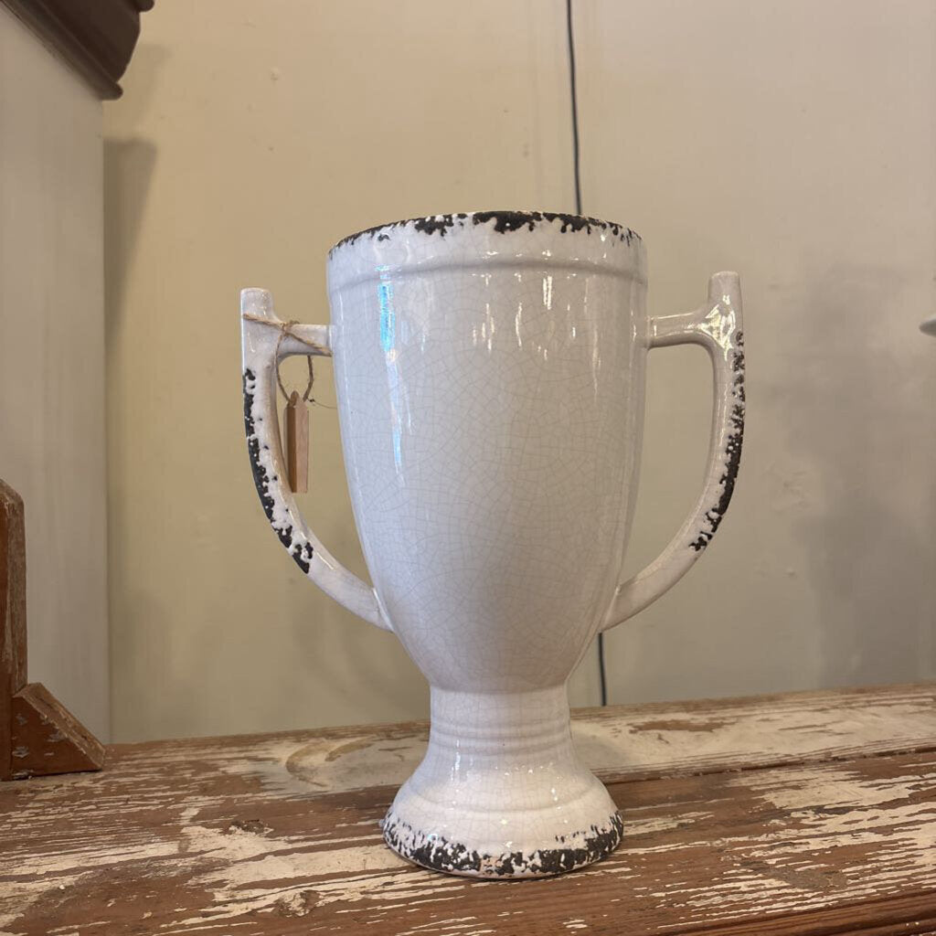 PRETTY WHITE CRACKLED TROPHY URN VASE WITH SOME DISTRESS