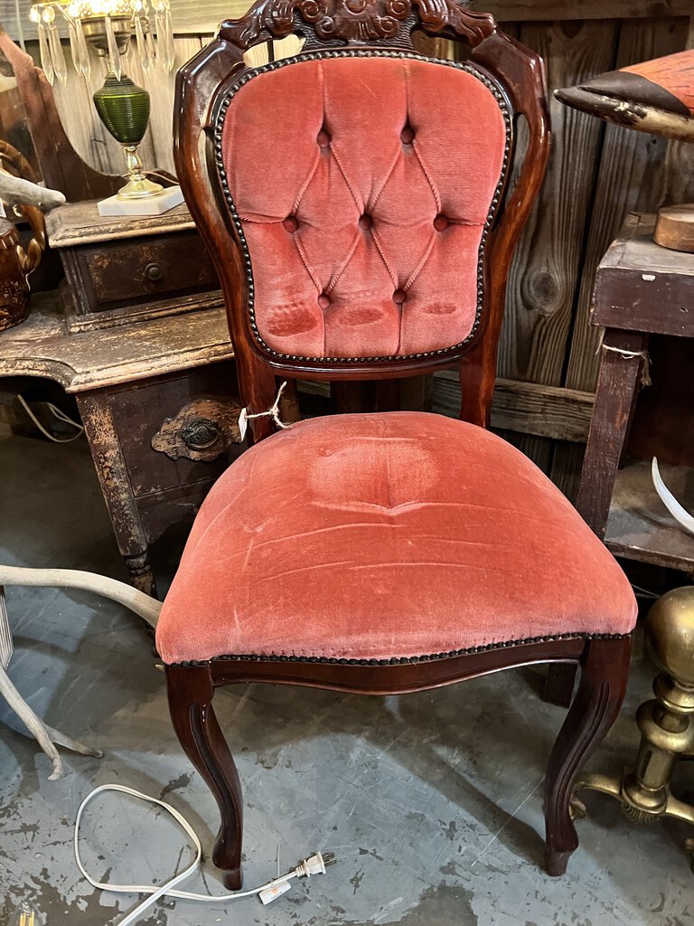THIS VELVET CHAIR IS THE PERFECT ADDITION TO ANY ROOM. ADD SOME STYLE TO YOUR DINING ROOM OR SOME FLAIR TO YOUR BEDROOM! 40" TALL