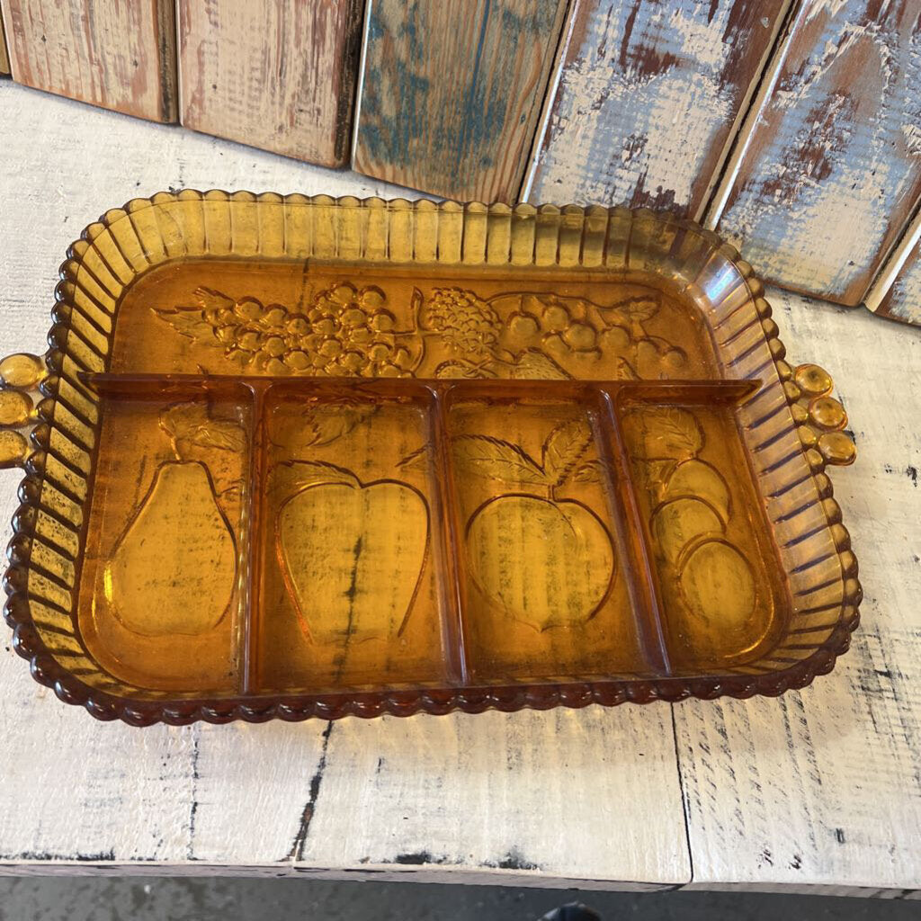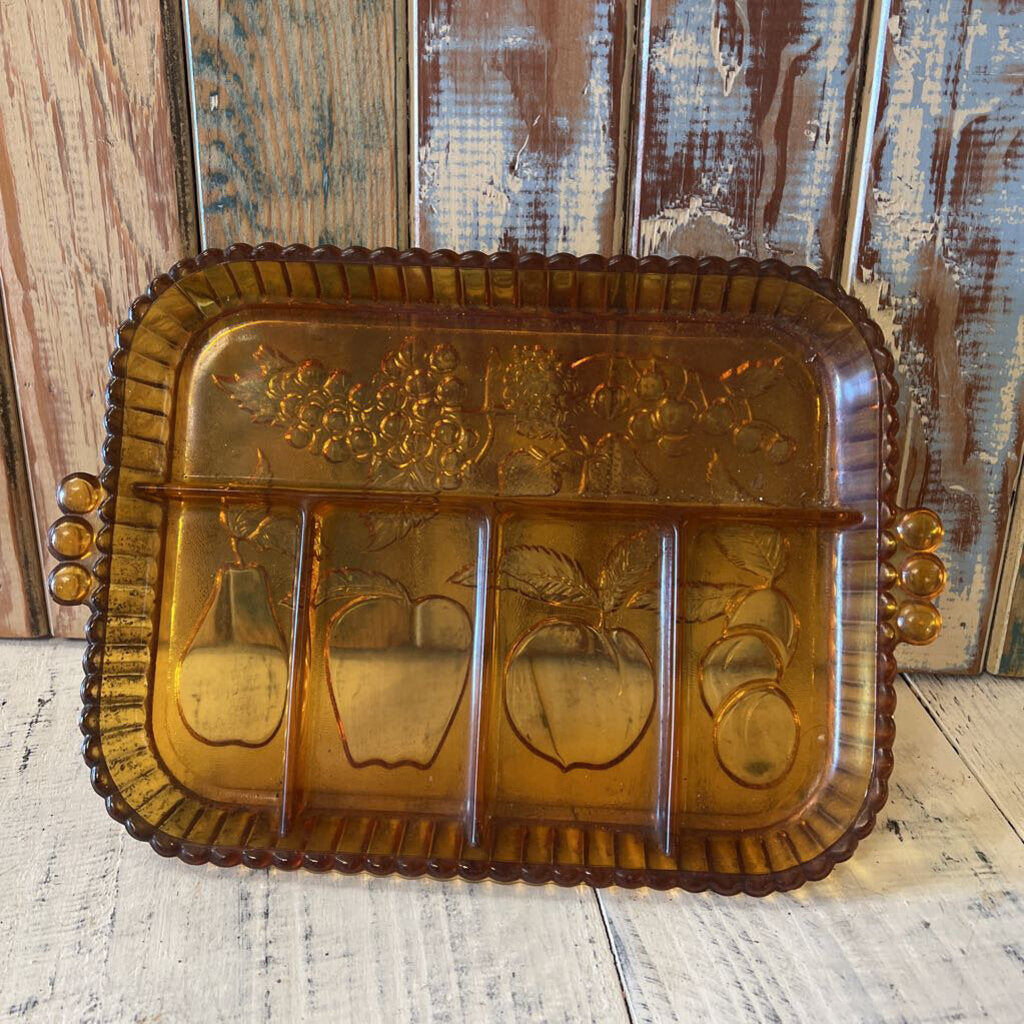 VINTAGE INDIANA GLASS CO AMBER RELISH TRAY