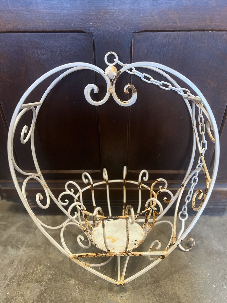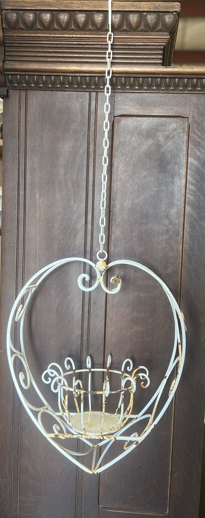 VINTAGE IRON HEART SHAPED HANGING PLANTER