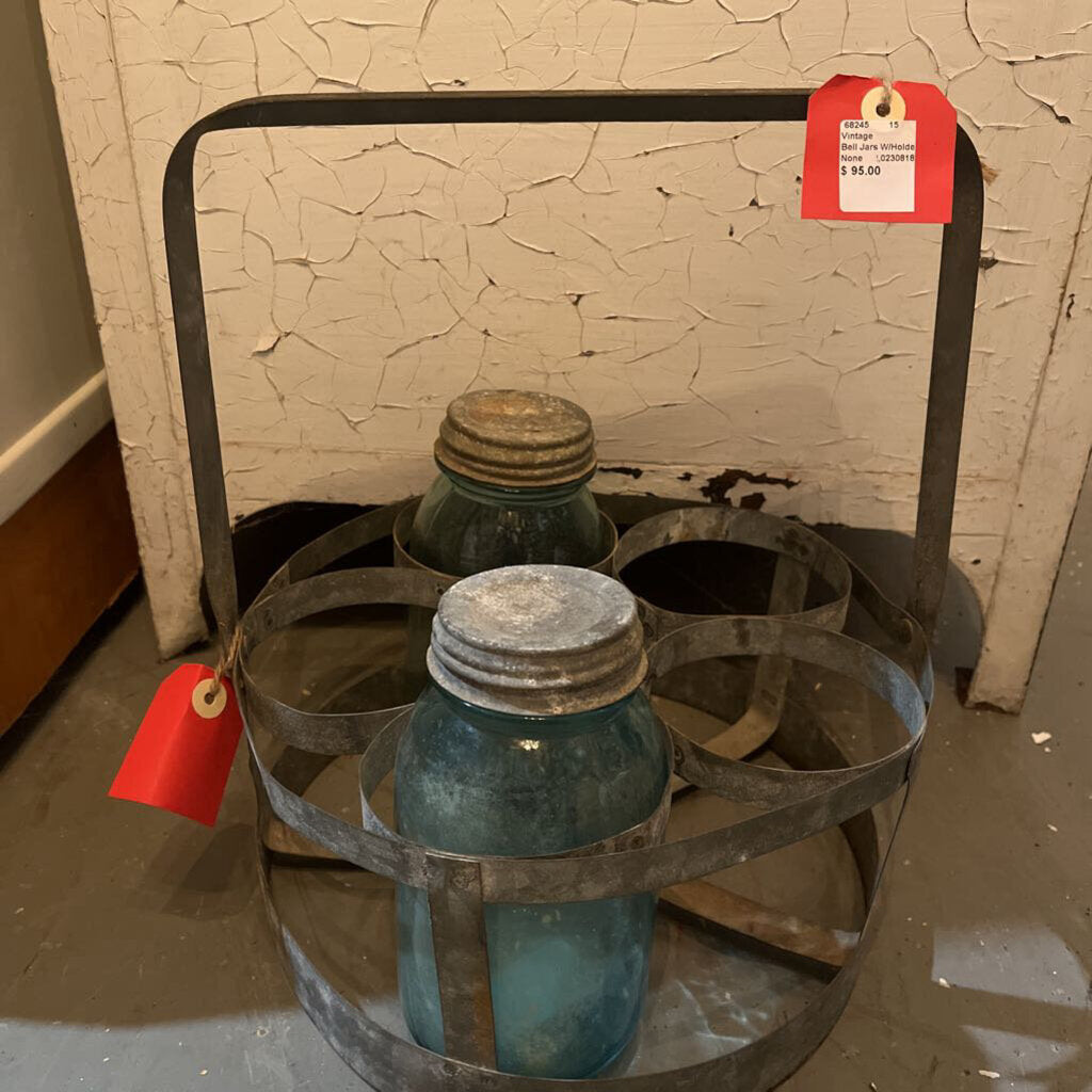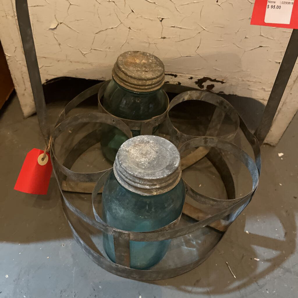 VINTAGE METAL MILK JAR BOTTLE CADDY