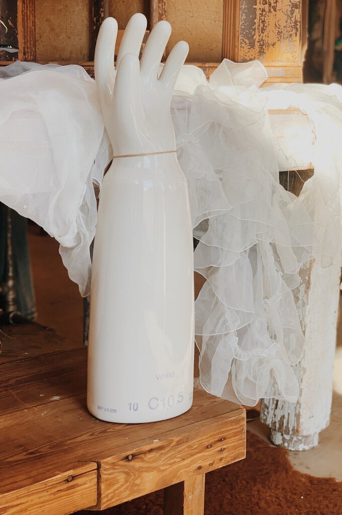 These vintage oversized white porcelain hand glove molds are the absolute coolest! These are great decor on a shelf or table in threes or fives paired with our smaller glove molds (19145). No two hands are exactly alike, but they measure roughly 22.5 inches tall by 7 inches wide.