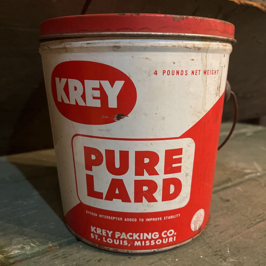 VINTAGES 1960s KREY PACKING CO LARD TIN CAN 4 POUNDS
