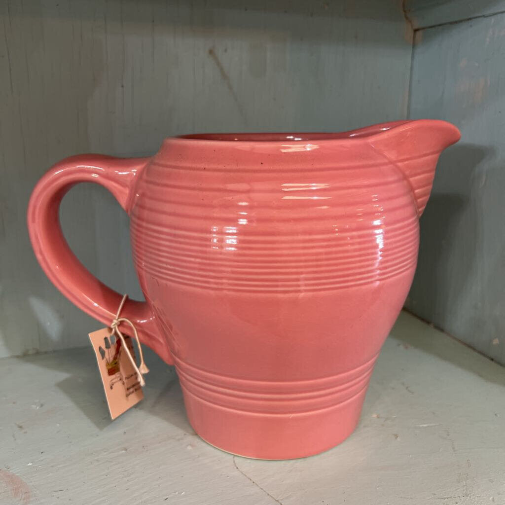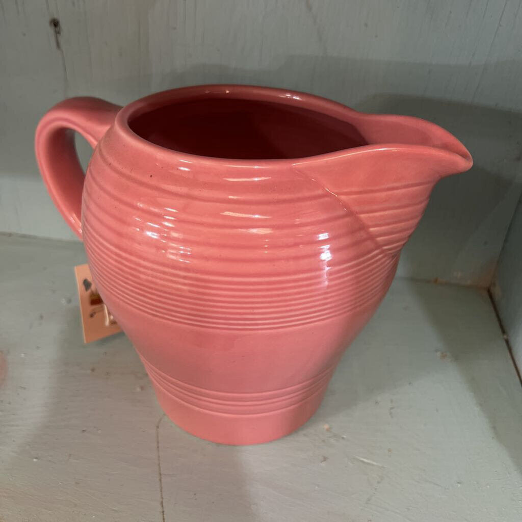 EXCELLENT CONDITION PINK WATER PITCHER. NO CRACKS OR CHIPS 7" TALL 9" WIDE (SPOUT TO HANDLE) STAMPED SONOMA ON BOTTOM