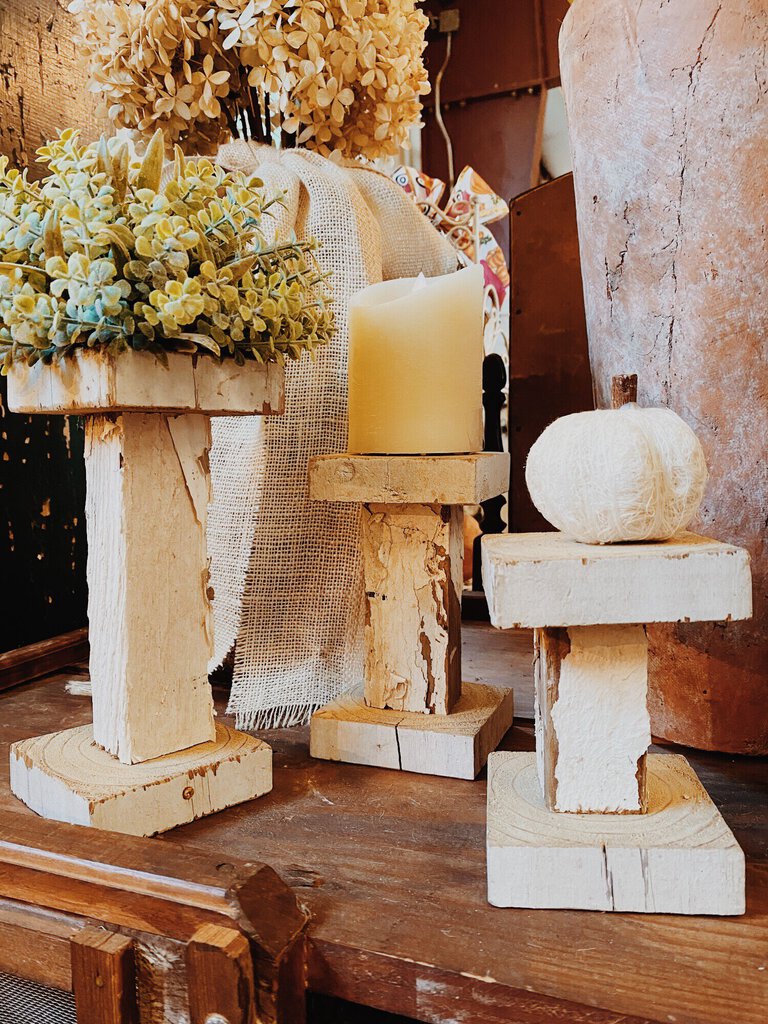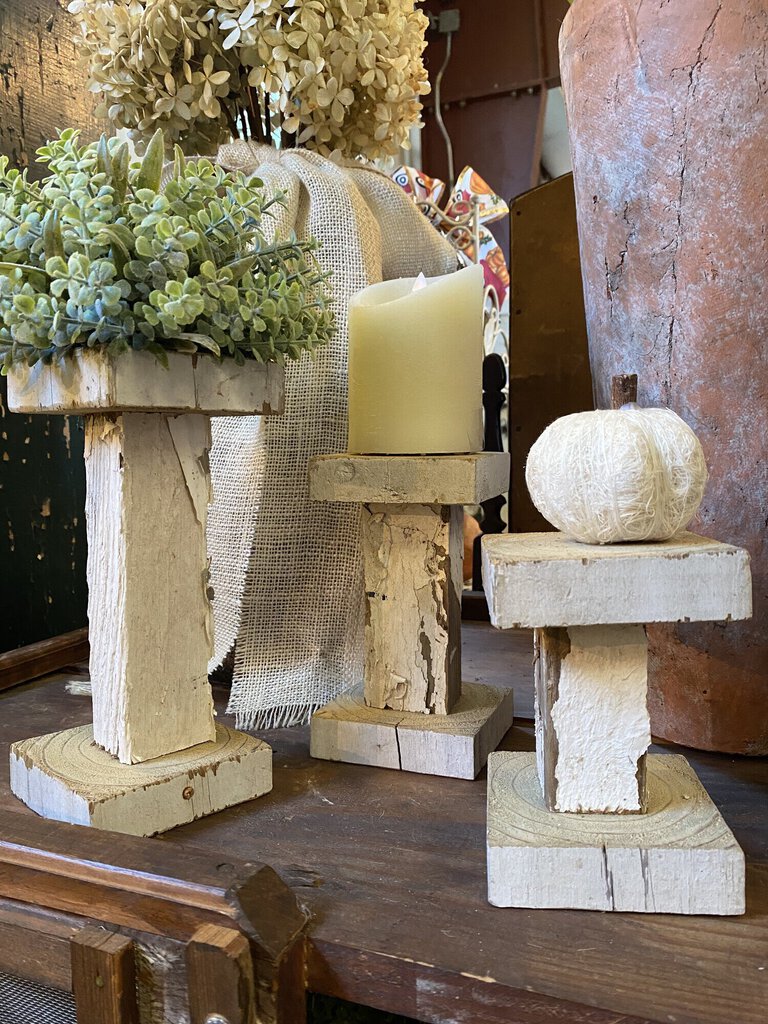 This wood pedistal is perfect to use anywhere in your home that needs some height and interest. Use them for weddings, candles or gather a few together for a nice center piece display