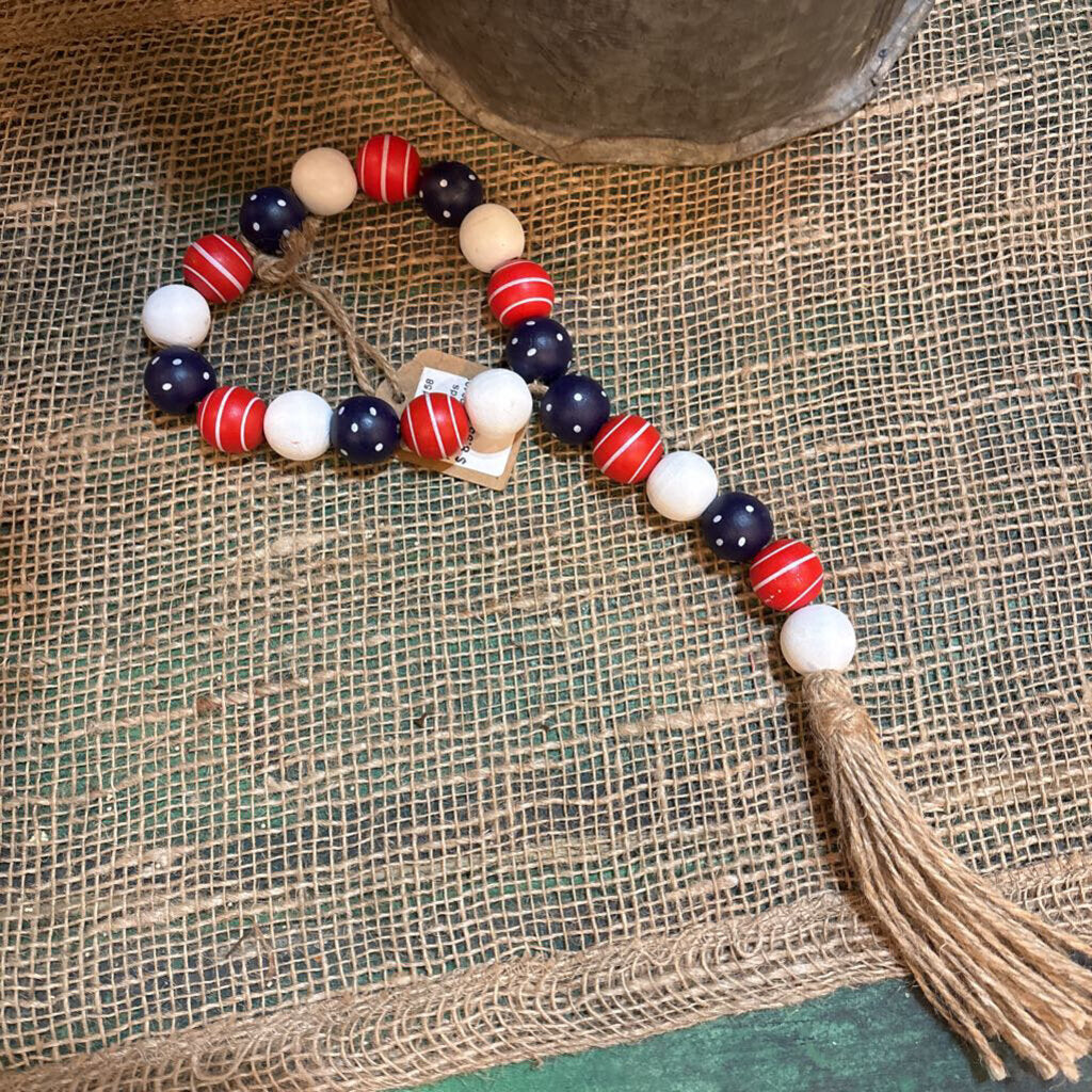 ADD THE FINAL TOUCH TO YOUR PATRIOTIC DISPLAY WITH THESE CUTE BEADS. MEASURES 14" TO END OF TASSEL